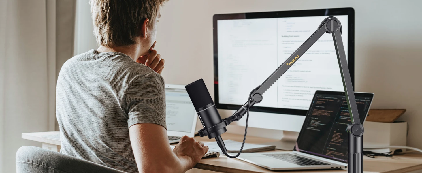 เข้ากันได้กับไมโครโฟนแบบเกลียวขนาด 5/8″ หรือ 3/8″ ส่วนใหญ่ (MAONO PD200X/PD400X และอื่นๆ) คุณเป็นสตรีมเมอร์, Youtuber, ผู้ผลิตเพลงหรือ Podcaster, ขาตั้งไมโครโฟนนี้จะถือไมโครโฟนของคุณได้ดีให้คุณให้สภาพแวดล้อมการทํางานที่กะทัดรัดยิ่งขึ้นโดยไม่รบกวนด้วยเสียงบันทึกของคุณ