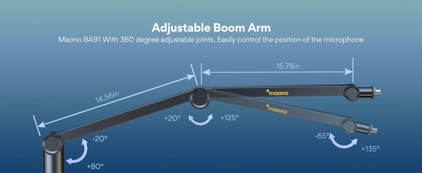 แขนไมโครโฟนสามารถปรับได้อย่างยืดหยุ่นได้ 360° เพื่อให้มีการเคลื่อนไหวที่หลากหลาย การปรับที่ยืดหยุ่น การขยายตัว และการหดตัวอย่างอิสระ ให้คุณสามารถแก้ไขแขนบูมได้ง่ายและปรับความสูงตามมุมและความสูงที่คุณต้องการ