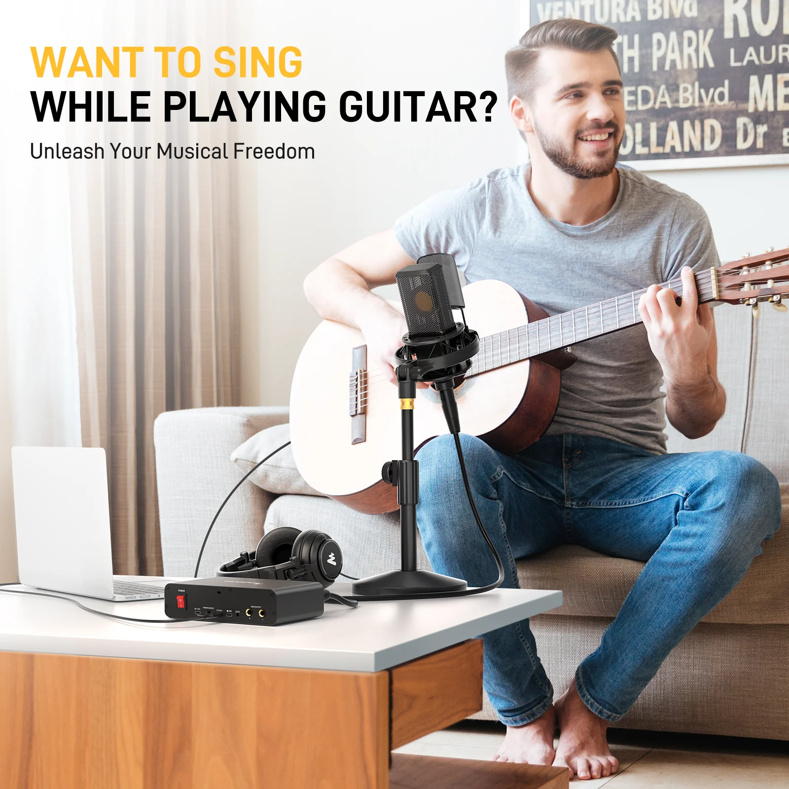 (黑色現貨)MAONO-PS22 USB音訊接口,適用於PC,專業前置放大器60dB,24bit 192kHz,USB連接、PC連接等
