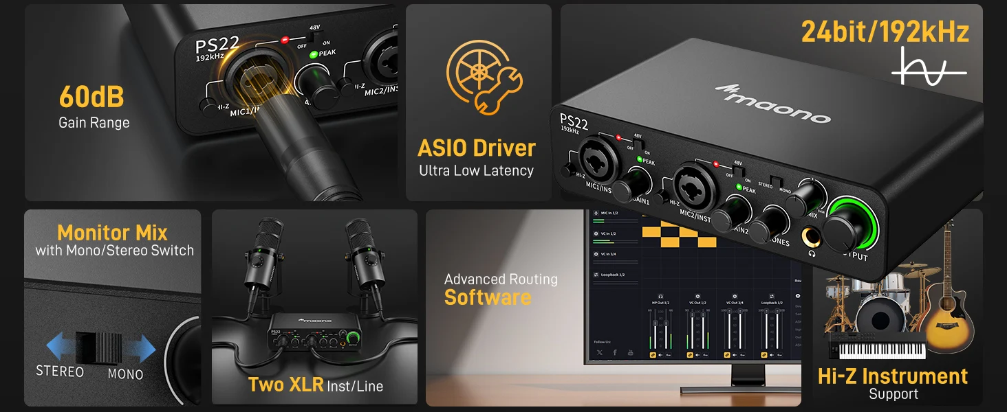 Maono ProStudio PS22,Maano ProStudio PS22,24 份/192 kHz,24 份/192 kHz,24 份。 2.